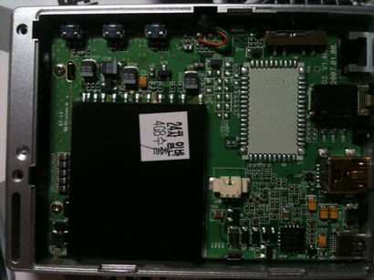 金属フレームで固定されている液晶を取り払った後の基盤。
